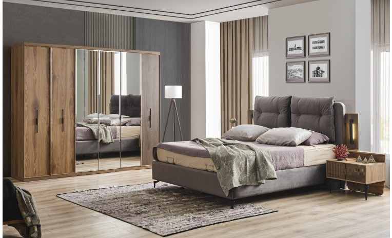 ارتقِ بغرفة نومك مع طقم غرفة النوم الأنيق كلارا كينغ من فهمي للمفروشات. تضفي درجات الخشب الدافئة والخطوط البسيطة والتفاصيل النحاسية الهادئة لمسة من الهدوء والفخامة على مساحتك.