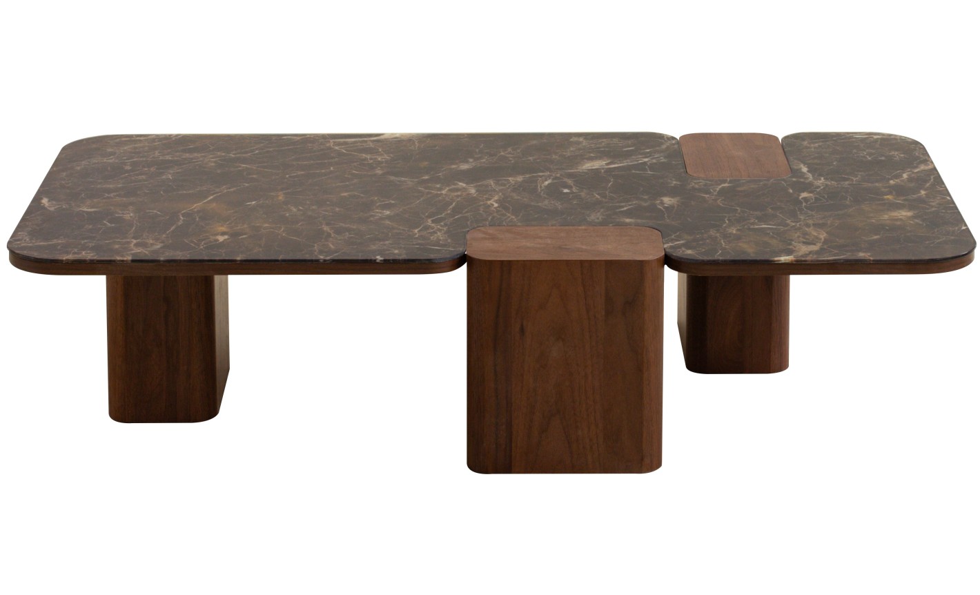 تضفي هذه الطاولة المستطيلة الراقية من أثاث فهمي طابعاً فخماً وأنيقاً على أي مساحة معيشة. يتميّز تصميمها الفريد المكوّن من جزأين بدمج تطعيمات خشبية داكنة وقاعدة قوية من الخشب المصمت، مما يعزّز مظهرها التنفيذي المميز.