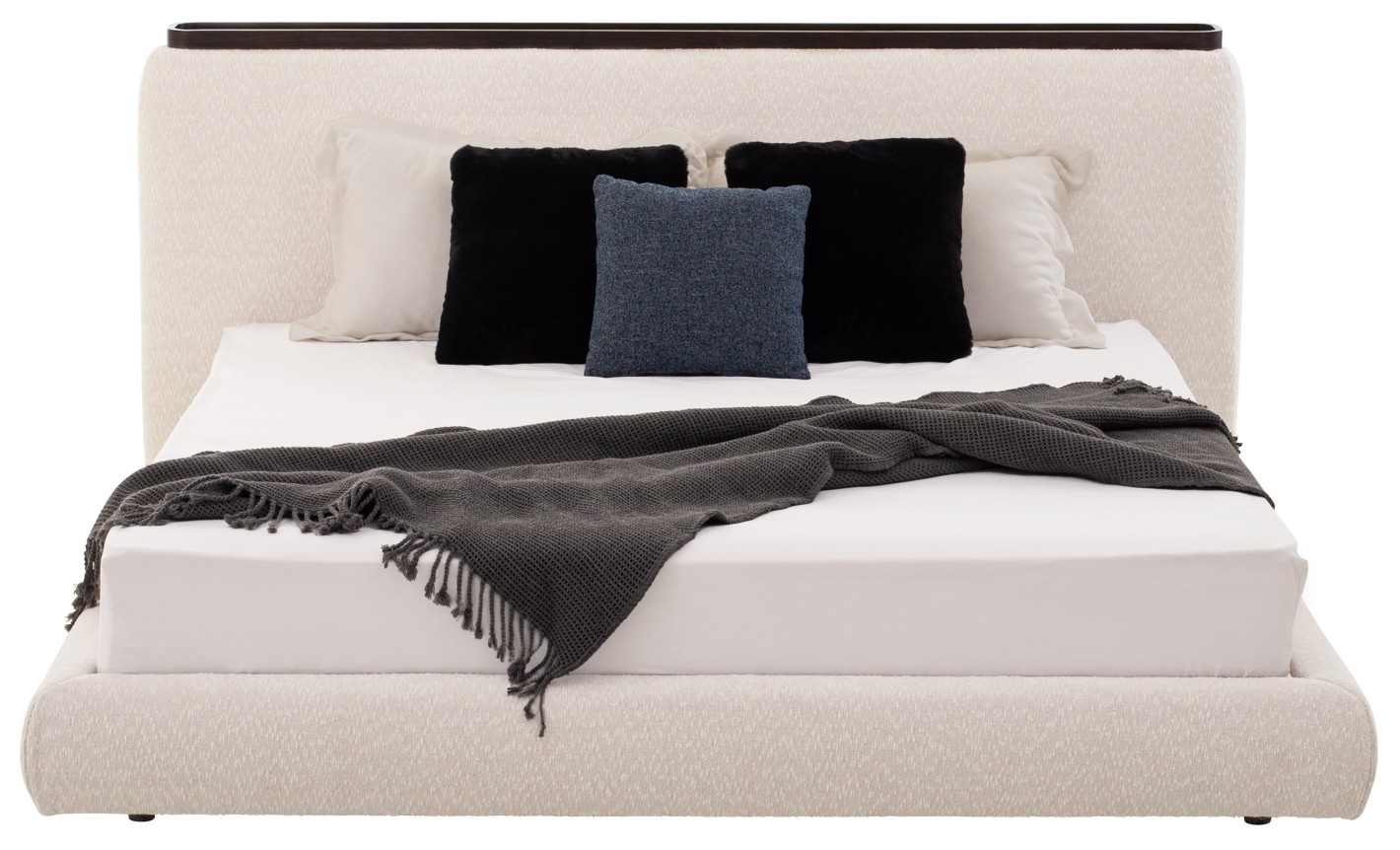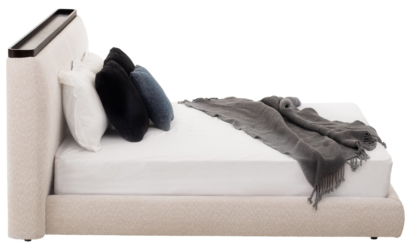 أضف لمسة من الراحة الفاخرة إلى غرفة النوم الرئيسية مع هذا السرير المُنجّد مقاس كينج من أثاث فهمي. يتميّز بتنجيد بوكلِيه كريمي ناعم ذي نسيج ملموس يغلّف الإطار المستدير المميز ولوح الرأس الكبير بحجمه اللافت. كما يضفي الإطار الخشبي الداكن المدمج على الجزء العلوي من لوح الرأس تفصيلاً راقياً وعصرياً.