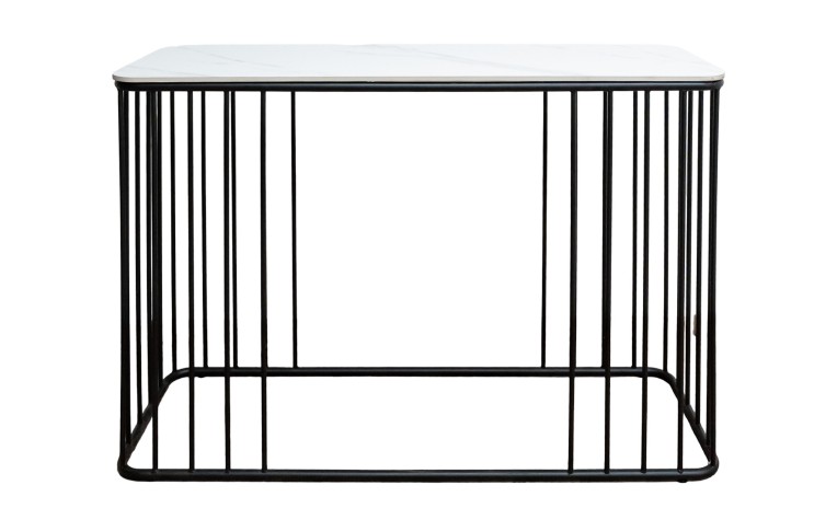 Introduce industrial chic to your home with this Black Console Table. This striking piece features a distinctive black powder-coated iron cage frame. Measuring 120cm, it's perfect for entryways, living rooms, or hallways, offering a stylish display solution.