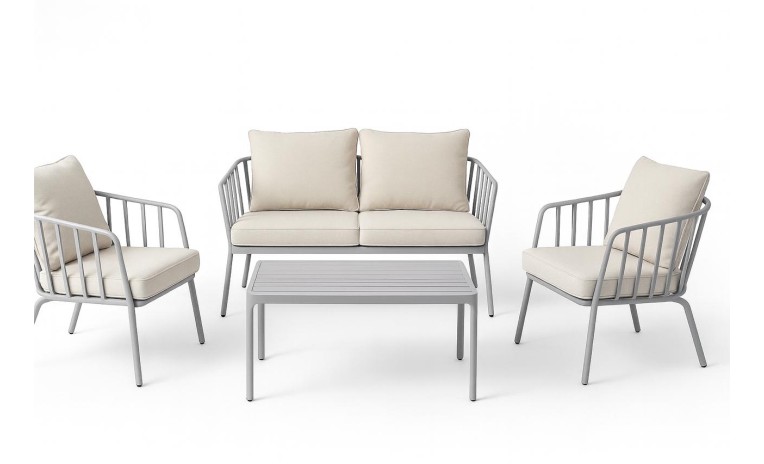 Transform your garden or patio with this modern 4-piece outdoor sofa set in elegant grey by Fahmy Furniture. This weather-resistant ensemble blends contemporary style, comfort, and functionality. Ideal for entertaining or relaxing outdoors, its plush cushions and sleek frames create a luxurious seating experience for family and guests.