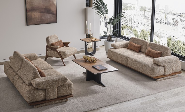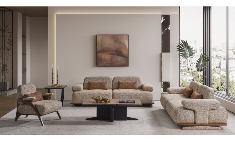 The Petra Sofa blends timeless elegance with modern comfort. Upholstered in premium textured fabric with warm earthy tones, it features plush cushioning, ergonomic armrests, and stylish wooden accents. Ideal for contemporary living rooms, this sofa offers both luxury and durability, making it a perfect centerpiece for family gatherings and elegant interiors.