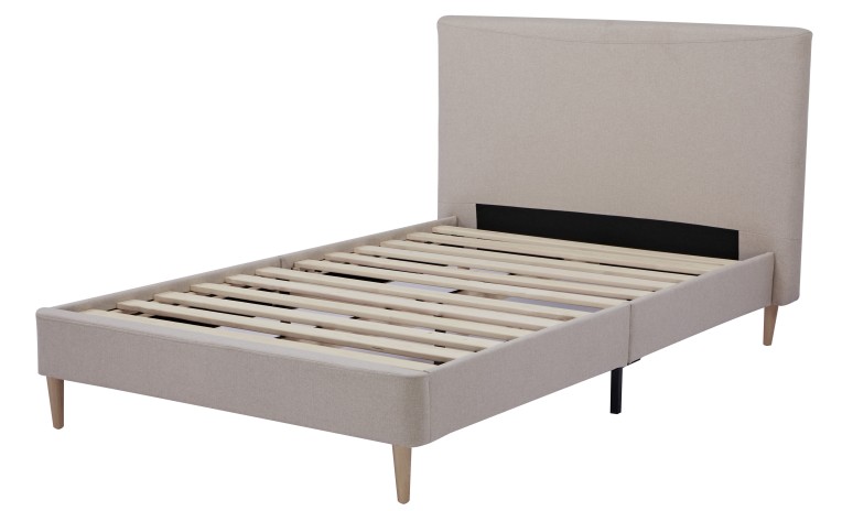 Upgrade your bedroom with this stylish Upholstered Single Bed by Fahmh Furniture. It features a subtle mid-century modern design with a gently curved headboard and tapered wooden legs. The durable linen-look fabric upholstery brings texture and warmth, while the included wooden slats provide excellent mattress support.